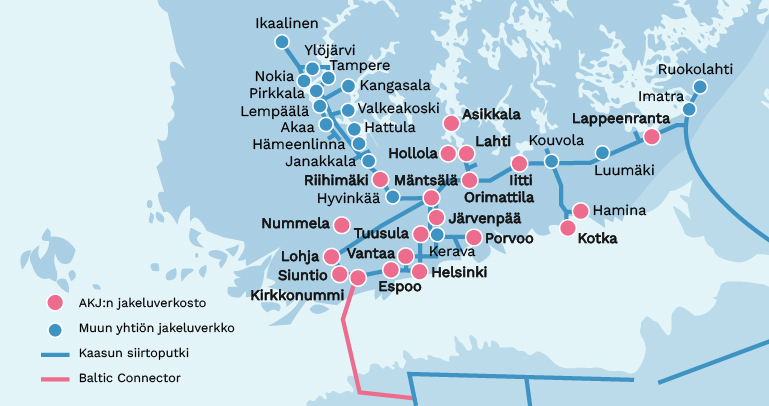 Olemme Suomen suurin kaasunjakeluyhtiö ja jakelemme kaasua laajemmalla alueella kuin mikään muu paikallinen yritys. Verkostomme kattaa 22 Etelä-Suomen kaupunkia ja kuntaa, ja sen pituus on noin 1200 kilometriä. Jakelemme kaasua noin 20 000 asiakkaalle.